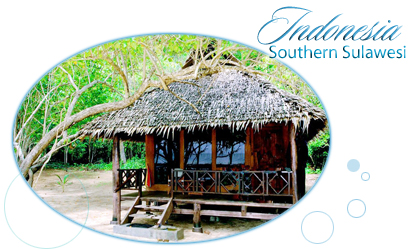 Beachfront on the edge of the jungle, 6 hours by bus and boat from Ujung Pandang airport