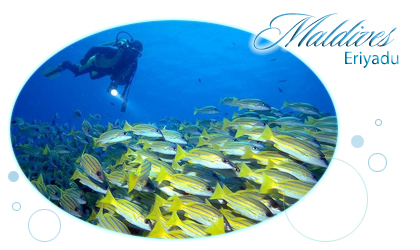 ![]() Diving & Snorkelling The local reef of Eriyadu is one of the most stunning in the Maldives with warm waters and magnificent visibility. There are 5 entry points spaced around the reef giving you access to the many wonderful reef formations. In these waters you will find guitar sharks and very large nurse sharks among the constant underwater companions; sometimes in late afternoon a huge koiba (2 metres) is sighted and you are likely to come across curious almost tame turtles, napoleons, rays, eagle rays, sharks, zebra sharks and a large number of bat fish. Due to its fortunate location there are two Manta seasons here; one runs from December till mid-April and the other from June till November. The best chances to see whale sharks in this area are during the months from November till April. The night dives on the drop off (wall) on the east side of the island are probably one of the most fascinating experiences you could hope for. You can dive on the house-reef from 6am to 8pm and Eriyadu is macro photography heaven. Due to its secluded position right at the top of the North-Male-Atoll, this island still offers exclusive diving areas, a feature which unfortunately can no longer be taken for granted in the Maldives. 35 out of the total 40 diving spots are visited only by divers from Eriyadu. The protective coral reefs surrounding each island in the Maldives contain over 1.000 species of tropical fish, innumerable varieties of shells and countless shapes and sizes of corals. The profusion of psychedelic colours, the abundance and variety of marine life, visibility often exceeding 50 metres and warm temperatures throughout the year, make diving in the Maldives a delight. Both of the mentioned resorts have excellent house reefs, and snorkellers can experience the same pleasures from the surface. |