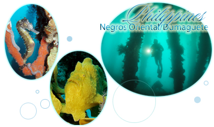![]() Diving & Snorkelling Some of the richest and most diverse coral reefs can be found in the Diving the Dauin/Zamboanguita region you can expect to encounter large turtles, rays, bump head Napoleon wrasses, seahorses, ghostpipe fish, stargazers, a huge variety of nudibranchs, countless beautiful soft and hard coral, sea fans, large schools of jacks and fusiliers, mantis shrimps, juvenile batfish, flamboyant cuttlefish, frogfish, mandarin fish, scorpion fish and much, much more. The sea stretch between Oriental Negros and Siquijor is furthermore known for the passing of large groups of dolphins and whales. In fact, the country's top marine institute at One dive site not to be missed under any circumstance is “The Pier”. The Pier of Dumaguete Coconut Mill (officially called Ducomi Pier) is a very unusual dive site and is rapidly achieving world class acknowledgement. It primary function is a shipping pier, used for the loading and unloading of coconut products, rice etc. The pier is densely overgrown with sponges and soft corals in all colours and shapes and is a true heaven for critter hunters! The pillars throw eerie light patterns and silhouettes and are thereby great objects for wide angle shots. You will also see different types of frogfish in all colours, many nudibranches, scorpion fish, leaf fish, devil fish, pipe fish, bat fish, seahorses, juvenile travallies, octopus, harlequin ghost pipe fish, harlequin shrimps, whiskered pipe fish, flamboyant cuddle fish, moray eels, sea snakes and juvenile bat fish. While the dive sites close to shore are dominated mainly by black sand and countless small critters, Photos courtesy of Amontillado & Thalatta Beach Resorts |